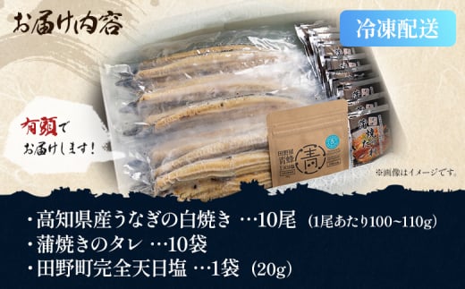 【白焼き】国産うなぎ 高知県産 10尾(100~110g×10尾) 合計1kg以上 田野町完全天日塩 20g付き 黒箱 7日程度 yw-0087