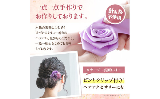 - 「リボンの薔薇」親子お揃いコサージュ(4)ゴールド 卒業式 卒園式 入学式 入園式 親子セット セット 結婚式 ブライダル パーティー イベント お祝い 感謝 胸飾り ブローチ 髪飾り ヘアアクセサリー 6色 手作り 奈良県 生駒市 送料無料