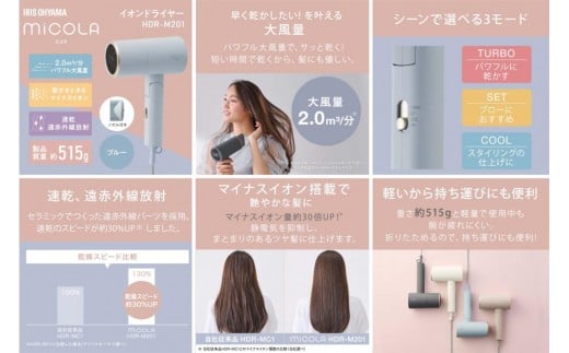 - MiCOLA (ミコラ)イオンドライヤーHDR-M201-Aブルー