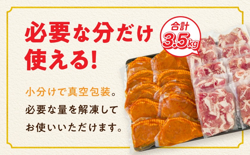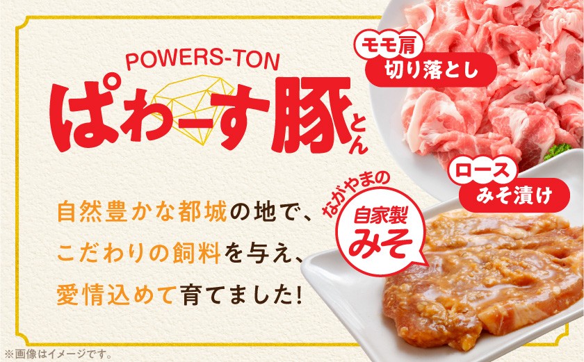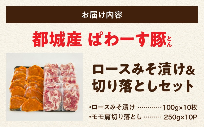 「ぱわーす豚」ロースみそ漬け&切り落としセット3.5kg_18-6403_(都城市) 都城産豚ロース肉味噌漬け (100g×10枚) 豚モモ肩切り落とし肉 (250g×10P) 計3.5kg ブランドポーク 真空包装 自家製味噌 小分け