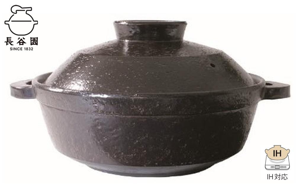 - 伊賀焼 IH対応ヘルシー蒸し鍋 黒釉(小)2~4人用
