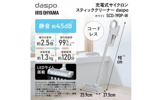 掃除機 コードレス サイクロン daspo SCD-190P-W【ホワイト 家電 電化製品 人気 おすすめ アイリスオーヤマ スティッククリーナー なるほど 宮城県 角田市】