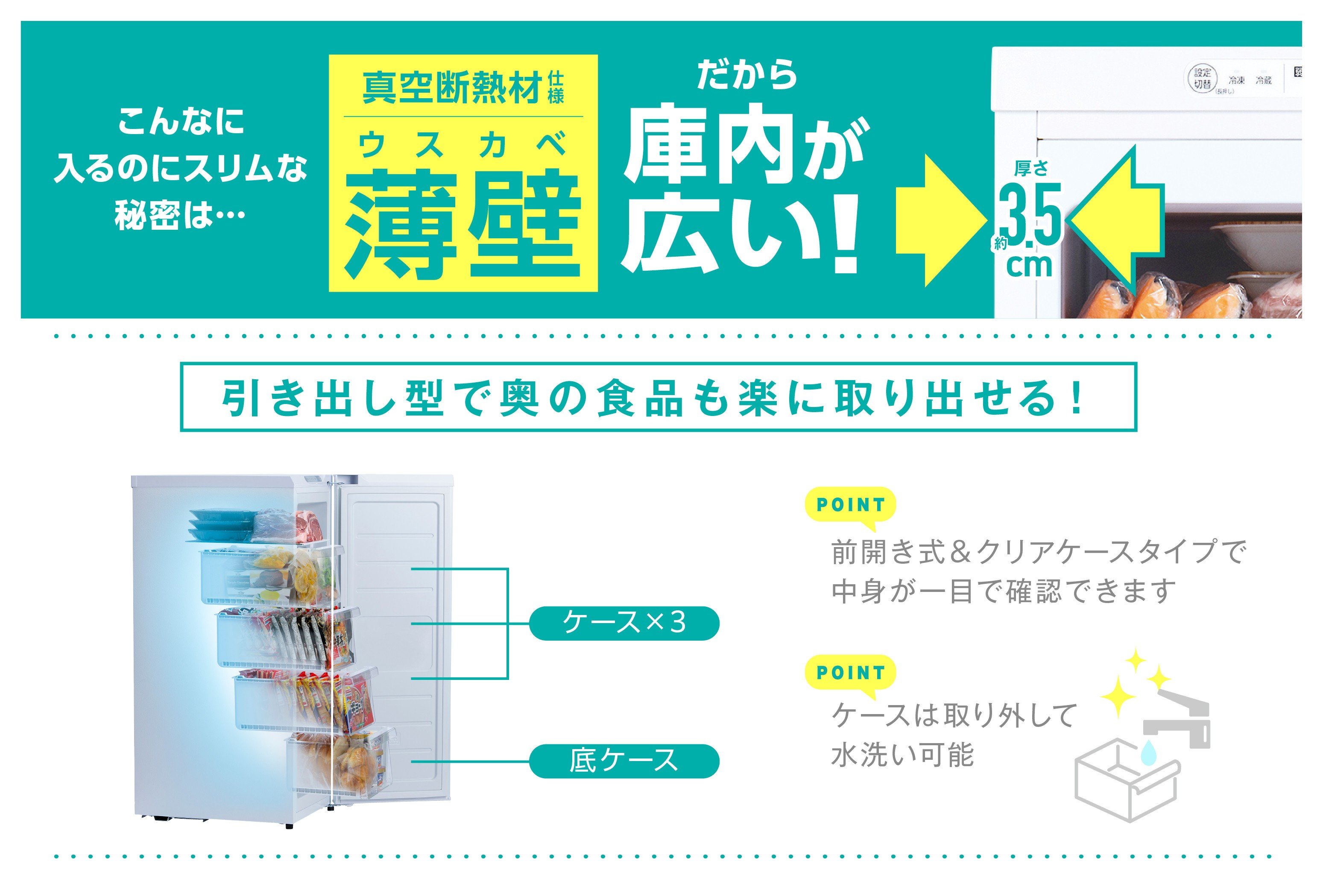 - 冷凍庫 スリム 小型 家庭用 前開き 80L セカンド冷凍庫 スリム冷凍庫 IUSN-8A-W ホワイト スキマックス ストック 冷凍 フリーザー ストッカー 保存 ファン式 キッチン家電 家電 アイリスオーヤマ