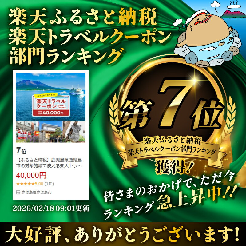 - 【ふるさと納税】鹿児島県鹿児島市の対象施設で使える楽天トラベルクーポン 寄付額40,000円 送料無料 鹿児島市 九州 お礼の品 贈り物 プレゼント トラベルクーポン 楽天トラベル トラベル クーポン 旅 旅行 旅行クーポン 楽天 旅券 温泉 観光地 ホテル 旅館 チケット