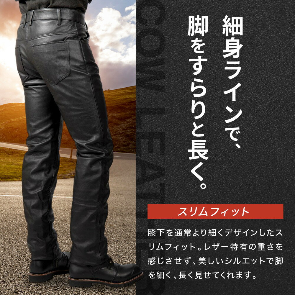 - 【ふるさと納税】スリムフィットレザーパンツ[DP-18A] ブラック〈サイズ選択可能〉[ 京都 八王子 バイクギア 牛革 パンツ ズボン ファッション 服 人気 おすすめ 革 レザー ツーリング ライダー バイカー バイク ブランド メーカー ギア パーツ 送料無料 ふるさと納税 ]