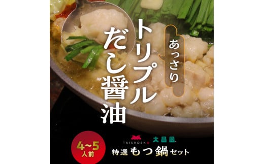 大昌園「特選もつ鍋セット・トリプルだし醤油4~5人前/特製辛味調味料付き」_大昌園 特選もつ鍋セット・塩牛スープ/トリプルだし醤油 特製辛味調味料付き_Cn122