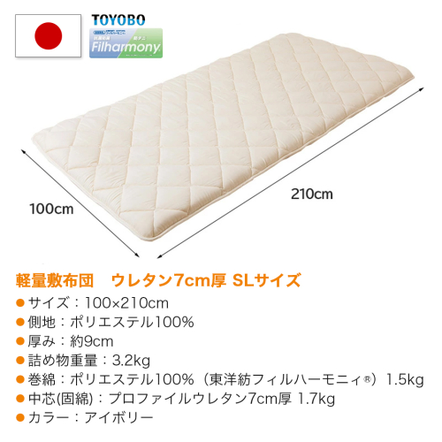 【アイボリー】体圧分散プロファイルウレタン軽量敷布団 ウレタン7cm厚 SL_AD-J203-iv