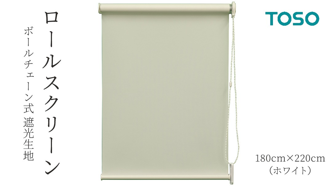 TOSO ロールスクリーン ボールチェーン式 遮光生地 180cm×220cm(ホワイト)ブラインド シンプルインテリア 遮光 遮熱 映写スクリーン [BD177-NT]