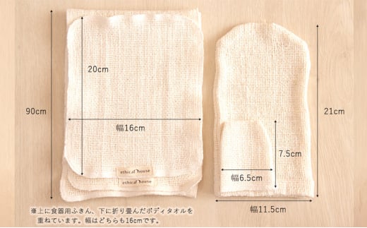 - 水だけで体を洗う 石鹸不要 綿ボディタオル&ミトンセット