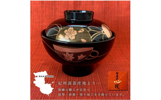 - 吸物椀 お椀 黒塗り 鈴春秋 5客組 セット 雑煮椀 年末年始 紀州漆器[YS46]