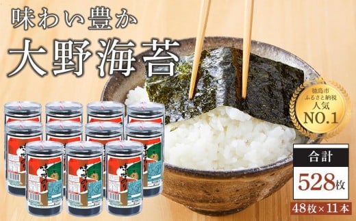 海苔 のり 大野海苔 528枚 ( 48枚 × 11本 ) 【のり 食品 味付のり 味のり 卓上のり 人気 おすすめ 送料無料 味付け海苔 味付けのり 焼き海苔】