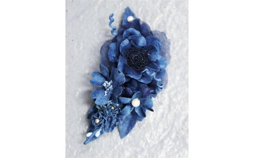 - 藍染花のコサージュ 紐付き