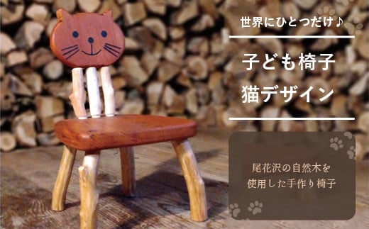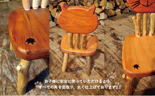 - 子ども椅子 猫デザイン 手作り 子供用 キッズ用 キッズ 椅子 イス いす チェア ファーストチェア 木製 家具 インテリア 木工房 楓舎 送料無料 ks-fnccc