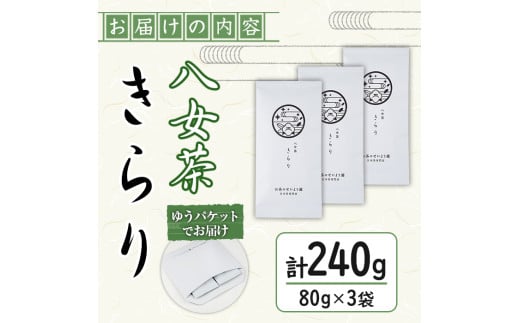 - <ポスト投函>福岡県産八女茶きらり(煎茶80g×3本) お茶 緑茶 八女茶 煎茶 茶 茶葉 常温 常温保存【ksg1601】【お茶の星陽園】
