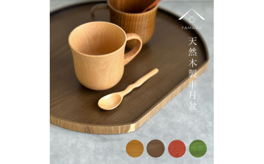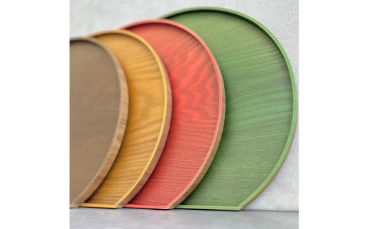 - [リーフグリーン]紀州漆器 木製 カラー半月盆 トレー 約36cm[YS142]