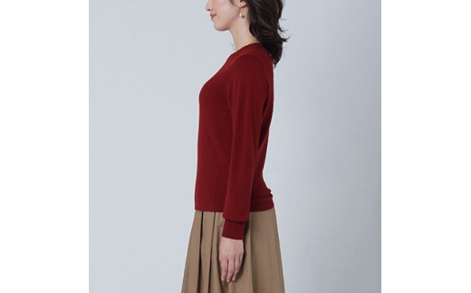 日本製 カシミヤ100% レディース クルーネック ワイン Sサイズ [2577]