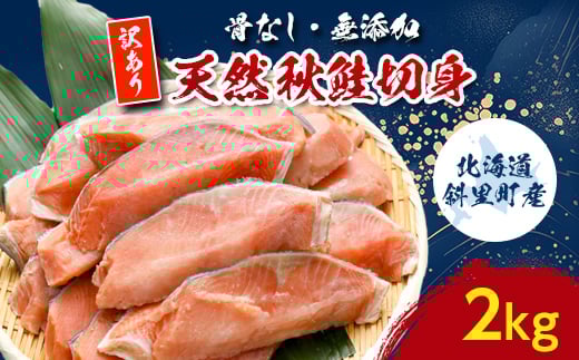 <訳あり>北海道斜里町産 骨なし天然秋鮭切身 2kg<無添加>【1507542】