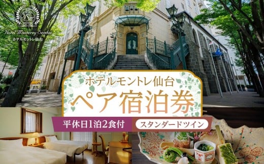 - 【ホテルモントレ仙台】平休日1泊2食付 ペア宿泊券《スタンダードツイン》