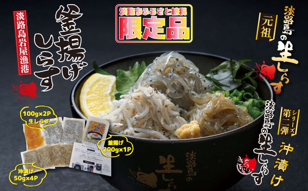 - 淡路島岩屋港の釜揚げしらす&淡路島の生しらす&沖漬けセット