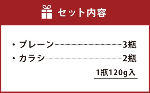 そぼマヨ(牛そぼろマヨネーズソース)プレーン3瓶、カラシ2瓶詰め合わせセット