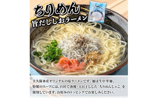 鹿児島県産ちりめんじゃこ使用!ちりめん旨だししおラーメン(10食) 大久保水産持ち船 幸栄丸 で 漁獲し 自社 天日干し のちりめん を使用した ラーメンです♪【A-1826H】