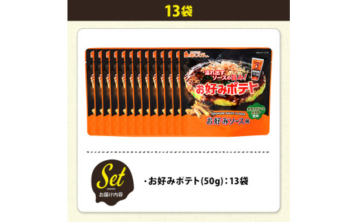 - <訳あり・種類が選べる!> 訳アリ じゃがスナック お好みポテト(13袋×50g) 簡易梱包 お菓子 おかし スナック おつまみ ポテト ソース お好みソース オタフクソース 送料無料 常温保存 【man219-F】【味源】