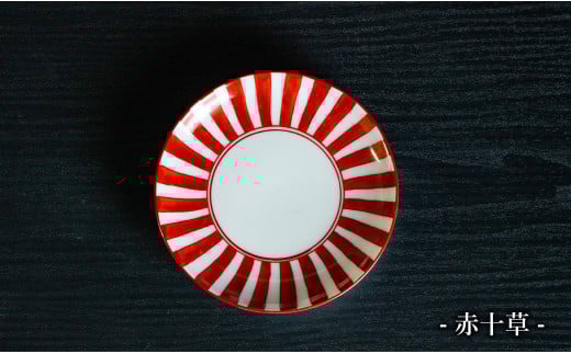 - 有田焼 手描き 赤絵 12cm 小皿 4枚セット(赤十草・全面市松・ひさご外赤濃・六方唐草)【池田伝平錦付工房】食器 器 うつわ 赤 おしゃれ 手書き 伝統工芸 A40-350