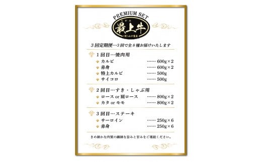 - YA【3回配送で全8種】特選最上牛3回定期便
