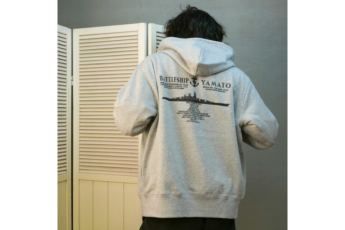 ジップアップパーカー【戦艦大和(背中横姿)】 (ミックスグレー)