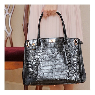 <濱野皮革工藝> クロコ クラッシーアーバントート(ブラック)【1263928】