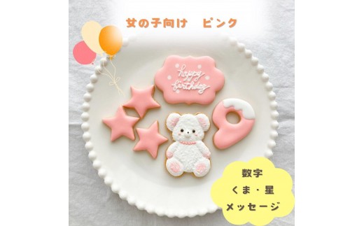 お誕生日クッキー〈くまさん〉 ピンク merry.cooking【数字:9】
