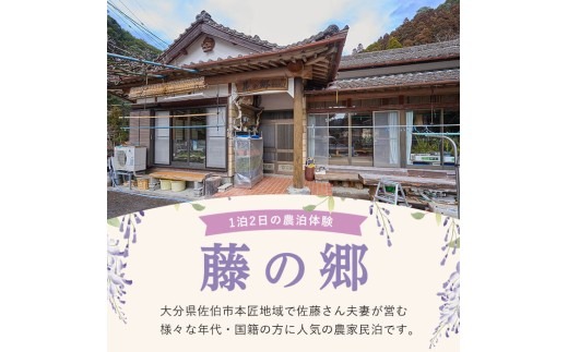 - 農泊体験・藤の郷 ペア1泊2食(ペアチケット) 体験 宿泊体験 チケット 民泊 宿泊 農村 食事付き 大分県 佐伯市【HD240】【さいき本舗 城下堂】