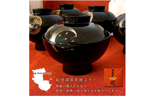 - 吸物椀 雑煮椀 お椀 黒塗り 蒔絵 小夜 5客セット お正月 紀州漆器[YS42]