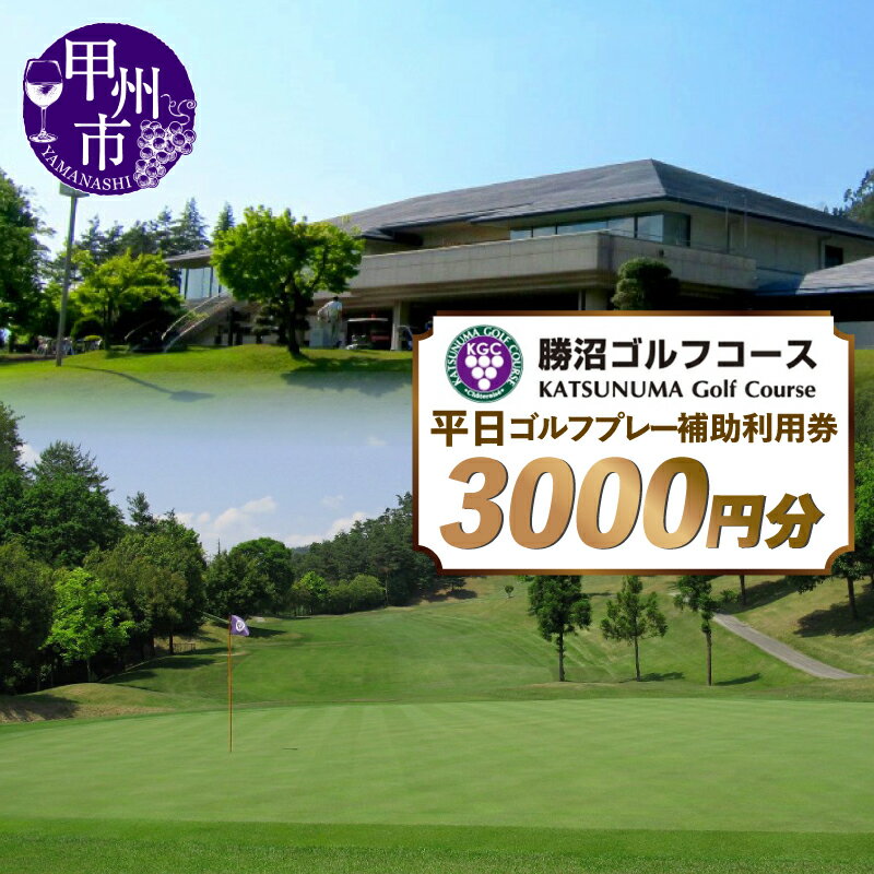 【ふるさと納税】甲州市 勝沼ゴルフ コース 平日 ゴルフプレー チケット 補助利用券 3,000円分 シャトレーゼ ドラコン ニアピン食べ放題 ケーキバー サラダバー アイス 最新カート【B-1310】