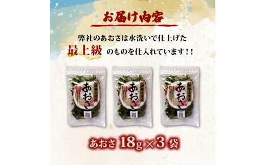 【 新物 】 あおさ 18g 3袋 セット 小分け 海藻 海苔 あおさ海苔 海産物 味噌汁 みそ汁 具材 朝 ご飯 朝食 夕飯 夕食 簡単 お手軽 三重 伊勢志摩 志摩
