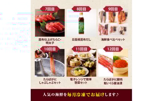 - 12ヶ月定期便!えりも海鮮バラエティコース【er002-037-c】(いくら 鱒いくら ホッケ サバ ホタテ カニ たらばがに 松前漬け 鮭 たらこ 明太子 昆布 だし魚介 グルメ お取り寄せ 送料無料 北海道 えりも町)