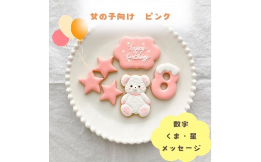 お誕生日クッキー〈くまさん〉 ピンク merry.cooking【数字:8】