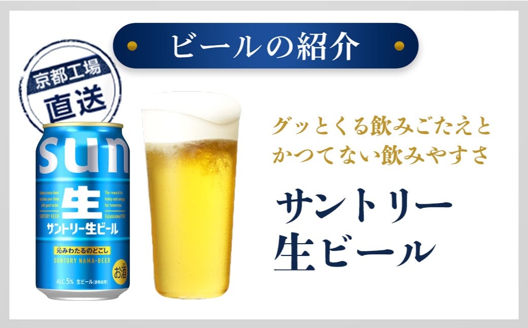 【京都直送】<天然水のビール工場>京都産サントリー生ビール 350ml×24本 ふるさと納税 サントリー 生ビール トリプル生 プレモル アルコール 工場 直送 天然水 爽快 京都府 長岡京市