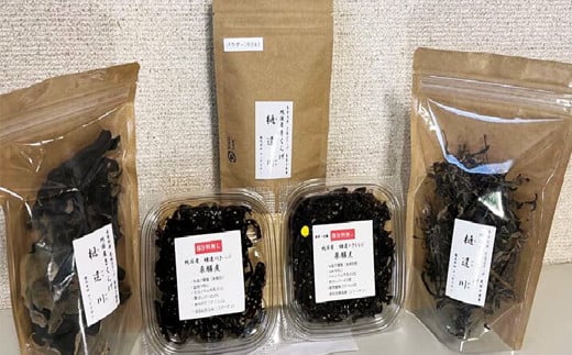純国産・有機栽培・完全無添加栽培 きくらげセットE(乾燥ブロック+千切+薬膳煮スタンダード+薬膳煮ゆず七味+パウダー60g)
