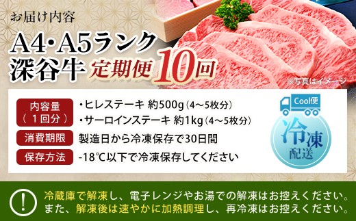 <10回定期便>A5・A4ランク深谷牛 国産牛肉 ヒレ&サーロイン ステーキ定期便 【11218-0044】