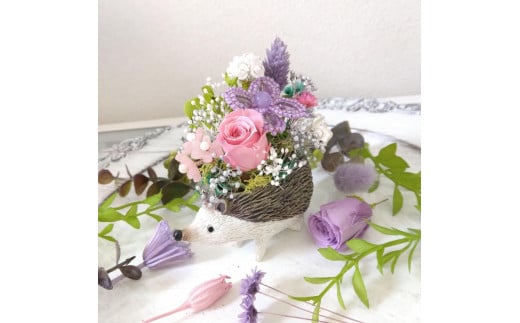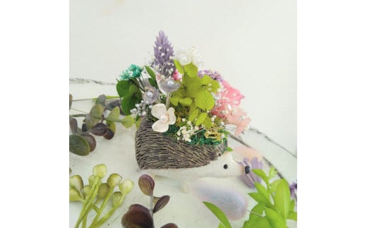 フラワーアレンジメント*ハリネズミ*プリザーブドフラワー*ビーズ*天然石