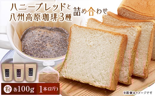 - ハニーブレッド1本(2斤)と八州高原珈琲(粉) 3種の詰め合わせ【1095587】