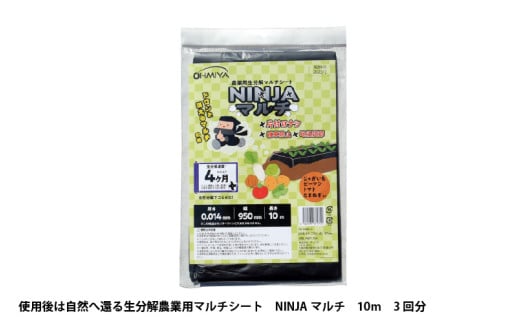 使用後は自然へ還る生分解農業用マルチシート NINJAマルチ 10m 3回分
