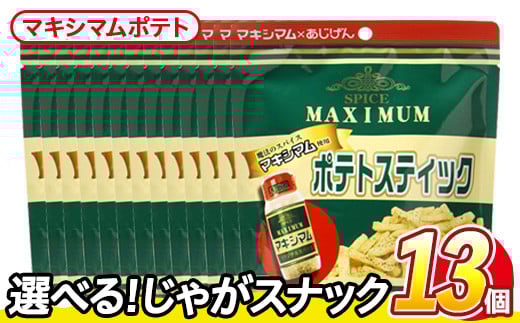 - <訳あり・種類が選べる!> 訳アリ じゃがスナック マキシマムポテト (13袋×50g) 簡易梱包 お菓子 おかし スナック おつまみ ポテト スパイス マキシマム 送料無料 常温保存 【man219-E】【味源】