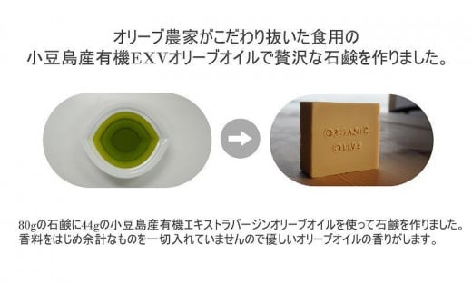 - 小豆島産オーガニックオリーブ石鹸 80g 食用の小豆島産有機EXVオリーブオイルで作った石鹸