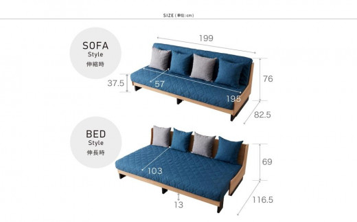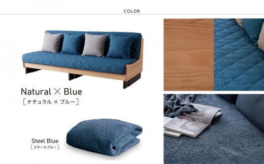 - 【 シェニール らくらくカバー セット <スチールブルー> 】 ソファ ソファベッド 幅200 ドロシー2 ごろ寝ソファ <ナチュラル×ブルー>【モーブル】【大川家具】