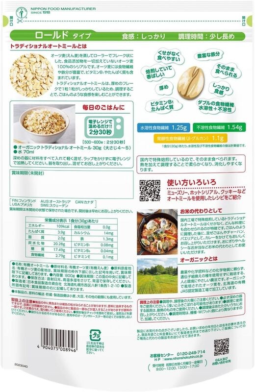- 日食 オーガニックピュア トラディショナルオートミール(ロールドタイプ)800g×10袋 G024
