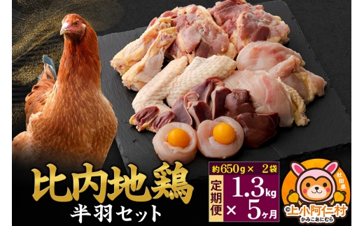 - 【定期便5ヶ月】比内地鶏 鶏肉セット(半羽) 1.3kg(650g×2袋) 1.3kg 国産 冷凍 鶏肉 鳥肉 とり肉