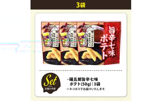 <訳あり・種類が選べる!> 訳アリ じゃがスナック 礒五郎旨辛七味ポテト (3袋×50g) 簡易梱包 お菓子 おかし スナック おつまみ ポテト 七味 送料無料 常温保存 【man217-C】【味源】