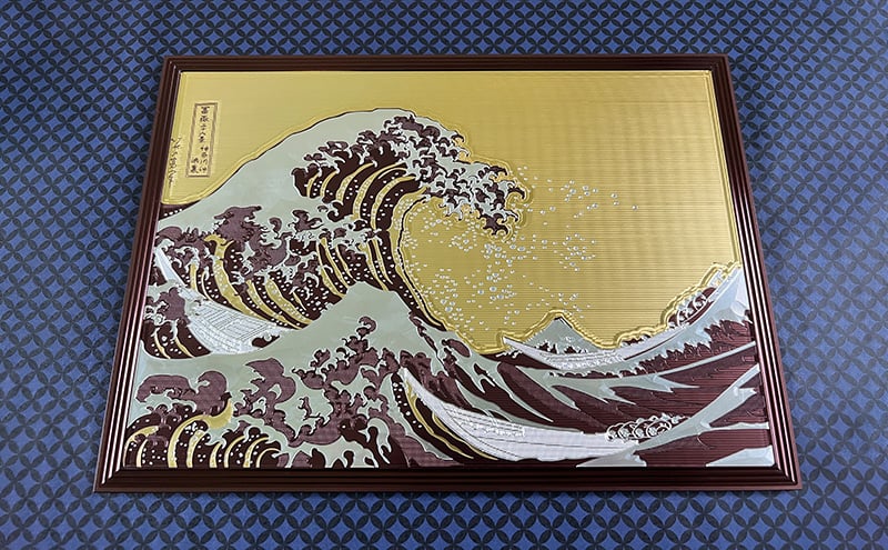 - [№5762-1059]Metal Artwork 金属絵画「富嶽三十六景 神奈川沖浪裏」 ブラウン+シャンパンゴールド